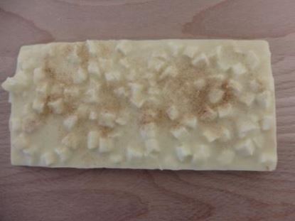 A bar of Belgian Couveture chocolate, flavoured with natural Apple flavour and generously incorporating dried apple pieces, then topped with sweet cinnamon sugar. Available in a range of sizes